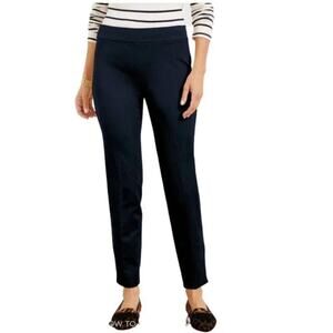 Talbots Navy Blue Chatham Ponte Knit Ankle Pants 14 Flat Front Side Zip Career