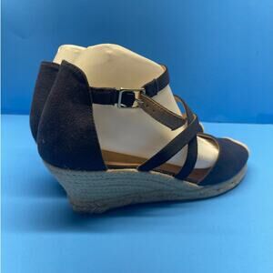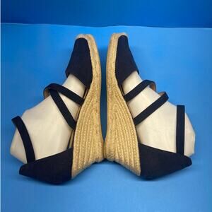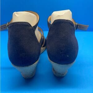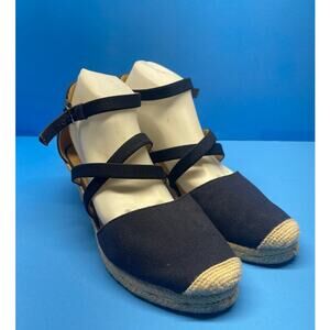 Talbots Navy Blue Espadrilles Closed Toe Straw Wedge Sandals Size 10.5