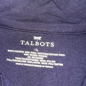 Talbots Navy Blue Fleece Quilted Chest 1/4 Zip Long Sleeve Sweater Women's XL