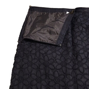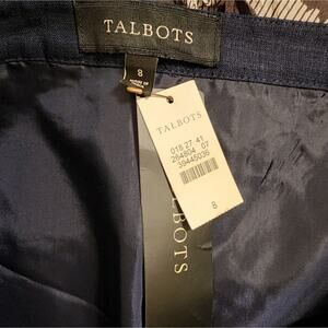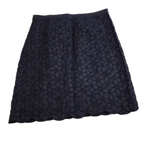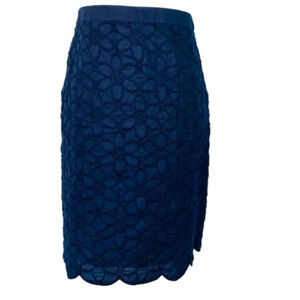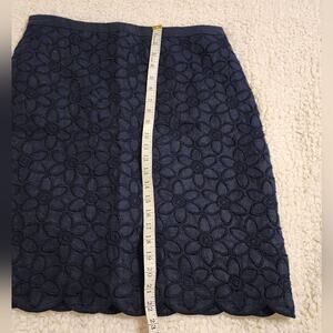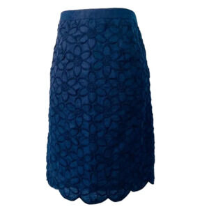 Talbots Navy Blue Floral Embroidered Scalloped Hem Linen Skirt size 8 new!!!