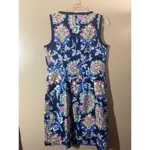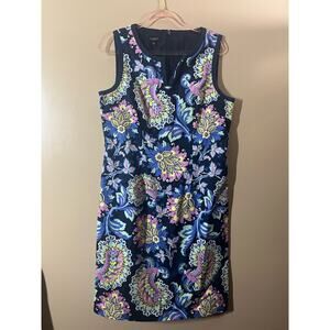 Talbots Navy Blue Floral Paisley Print Sleeveless Dress 6p