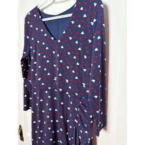 Talbots Navy Blue Heart V-neck Long Sleeve Faux Wrap Knit Dress Women's 12