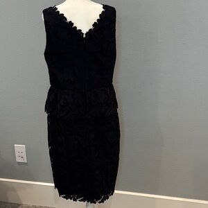 Chic navy blue lace peplum midi dress by Talbots. Features a sleeveless design with elegant lace overlay. Perfect for formal events. NWOT