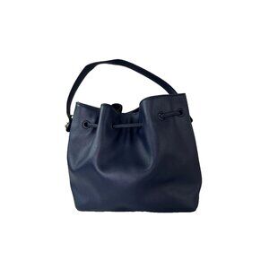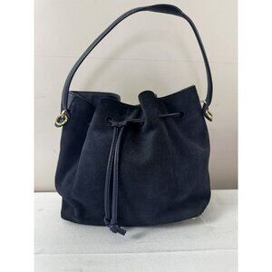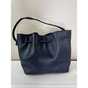 Talbots Navy Blue Leather & Suede Hand Bag Satchel Purse Preppy. Chic and timeless Talbots handbag in a rich navy blue color, crafted from a combination of smooth leather and soft suede. Features a drawstring closure with gold-tone hardware and a single shoulder strap for easy carrying. Perfect for everyday use, work, or casual outings. Made in Vietnam. Nice, pre-loved condition. 9.5" width, 5" depth, 9" height.