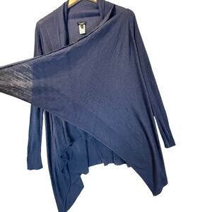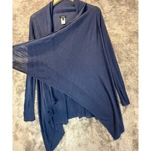 Talbots Navy Blue Linen Drape Front Open Cardigan Sweater Lightweight S Small