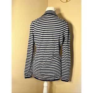 Talbots Navy Blue Off White Stripe Open Front Cardigan XS