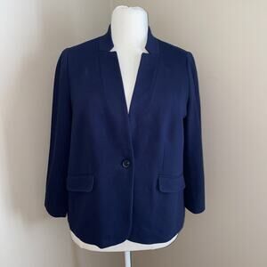 Talbots Navy Blue One Button Cotton Blend Lined Pockets Blazer Plus Size 18WP