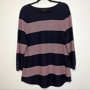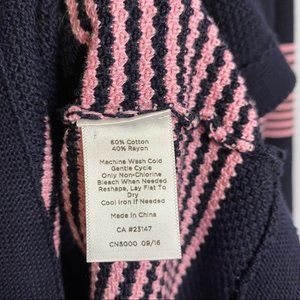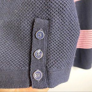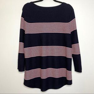 Talbots Navy Blue Pink Striped Waffle Knit Sweater