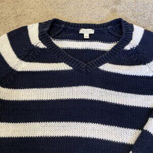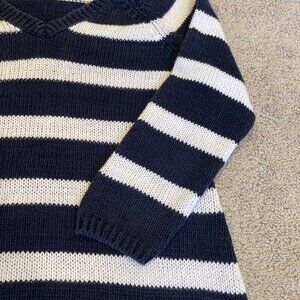 Talbots Navy Blue Stripe Sweater Women's Petite XS Cotton Blend Pullover Preppy