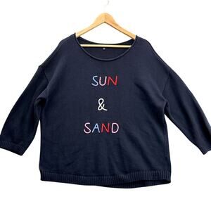 Talbots Navy Blue Sun & Sand 3/4 Sleeve Scoop Neck Sweater Women XL