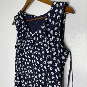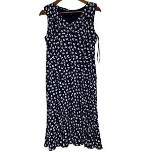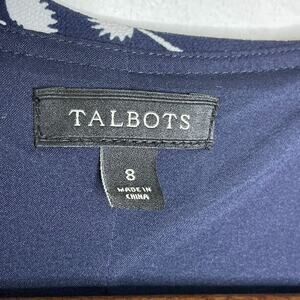 Talbots Navy Blue White Floral Print Sleeveless Fit Flare Dress Size 8 Women