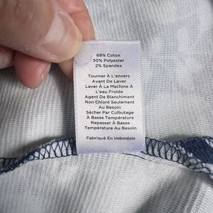 Add a touch of elegance to your wardrobe with this beautiful Talbots navy blue and white floral top. This knit dress top features a boat neckline and 3/4 sleeves, making it perfect for any occasion. The top is made of a cotton-polyester-spandex blend material that provides a comfortable and stretchy fit.