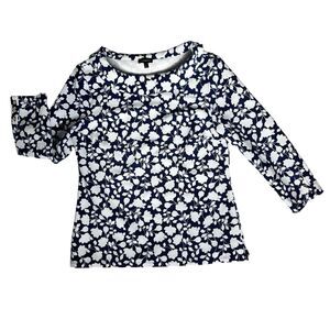 Talbots Navy Blue White Floral Top Women's Sz Small Knit Blouse Cottagecore Flowers
