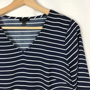 Talbots Navy Blue & White Stripe 3/4 Long Sleeve Blouse