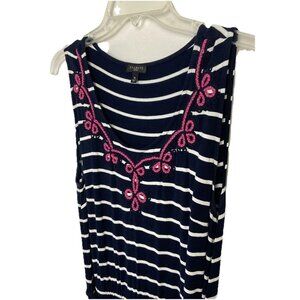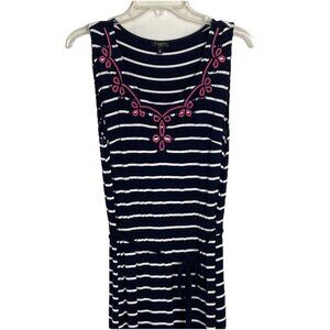 Talbots Navy Blue White Striped Pink Embroidered Maxi Dress PM Mp Tie