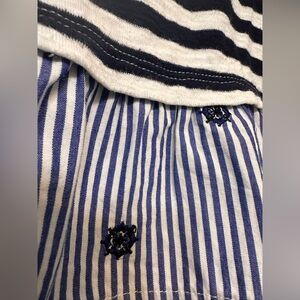 Talbots Navy Blue & White Striped Top Ruffle Hem 3/4 Sleeve Size Small
