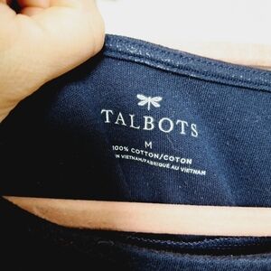 Talbots Navy Blue and Pink Stripe Colorblock Knit Cotton Quarter Sleeve Dress