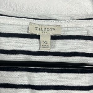 Talbots Navy Blue and White 3/4 Sleeve Boxy Tee Sz XL Boxy Cotton Lightweight