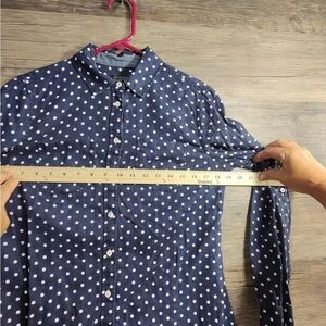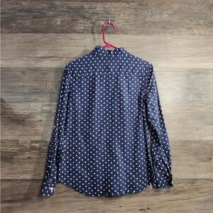 Talbots Navy Blue and White Polka Dot Button Down Shirt