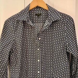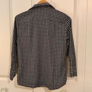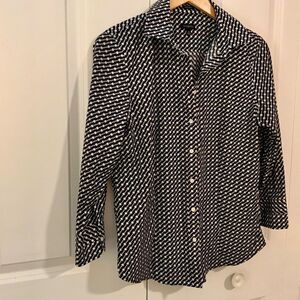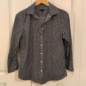 Talbots Navy Blue White Circle Print Wrinkle Resistant Collared Shirt Size 10