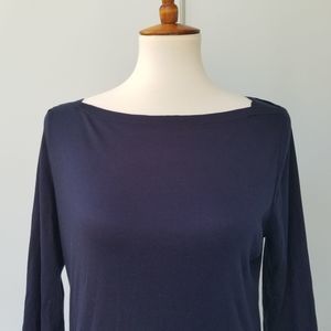 Talbots Shirt Top Navy Blue Boat Neck Soft Cotton Blend Size Large