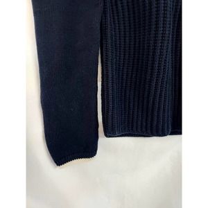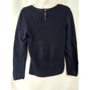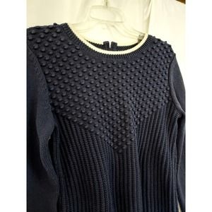 Talbots Navy Sweater with White Trim. Size M. 100% cotton, Machine wash cold/hand wash, Short zipper back, Textured knit. Long Sleeve, Approximately 24.5" sleeves, 17" armpit to armpit, 23" long. Pre Owned D10