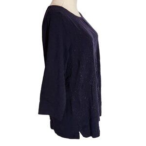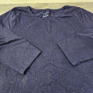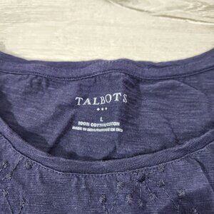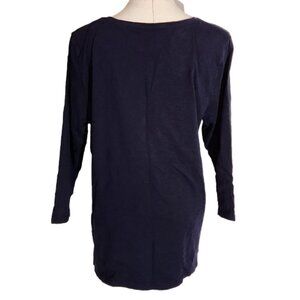 Talbots Navy Embroidered 100% Cotton 3/4 Sleeve Knit Top Women's Size L