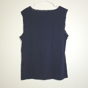 Talbots Navy Embroidered Eyelet Sleeveless Top Large