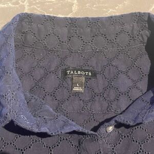 Excellent condition with no stains or tears. I would consider this slightly oversized and wore it open with a cami underneath like a jacket.