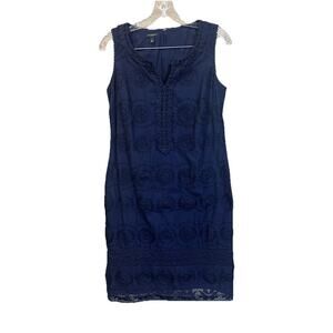 Talbots Navy Eyelet Lace Shift Dress Blue Size 4 Nautical Classic Shower Church