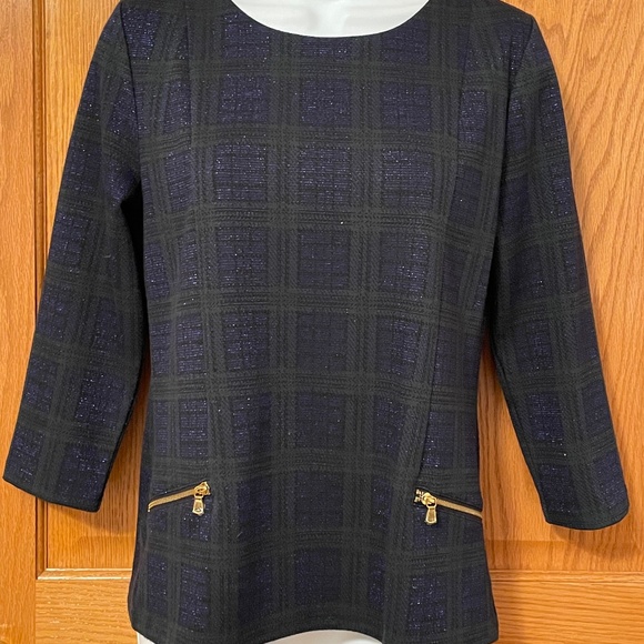 Beautiful pre owned top. Accent Side Zippers. Light metallic weave.
