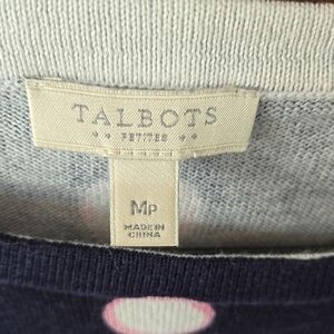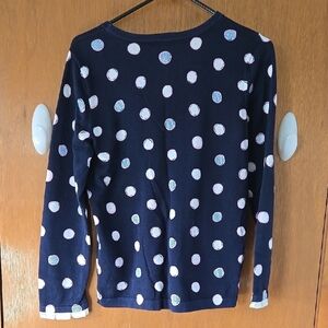 Talbots lightweight Stylish navy long sleeve top with white polka dots. Perfect for casual wear. size Medium P. in excellent shape.