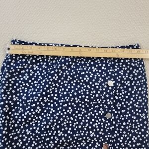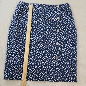 Talbots Navy Polka Dot Skirt Size 8 Front Buttons Cotton Blend