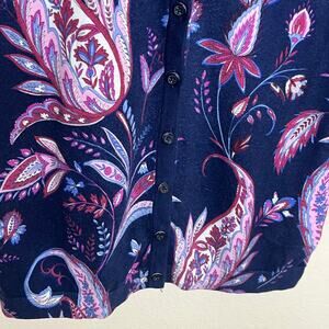 Talbots Navy Purple Paisley Button Up Cardigan Size Small