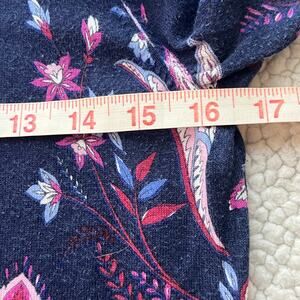 Talbots Navy Purple Paisley Button Up Cardigan Size Small. Preowned and in good condition. Cardigan is has navy back ground, paisley in purple and pink. Cotton/rayon blend and 3/4 sleeve. Please see all photos. Approx measurements in pictures.
