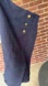 Stylish navy pencil skirt with textured fabric. Features elegant gold button accents. Perfect for professional or casual wear.