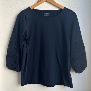 Talbots | Navy Top with Balloon Crochet Sleeves