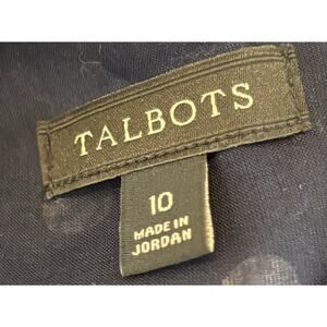 This Talbots dress is a navy blue A-line style with a white polka dot pattern, perfect for a nautical or preppy look. The pleated chiffon skirt adds a touch of elegance, making it suitable for occasions like weddings, parties, or workwear. Made from cotton and machine washable, this dress features a zip closure and is lined for added comfort. With a size 10 fit, this versatile piece is ideal for the summer or spring seasons, embodying a classic American and holiday-inspired theme.