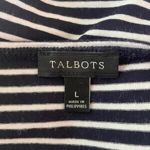 Talbots Navy & White Stripe Knit Top Size L 3/4 Sleeve Nautical Coastal Preppy