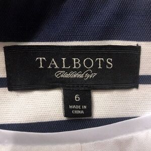 Talbots Navy & White Striped Blazer Jacket, Double Breasted, Lined, Cotton