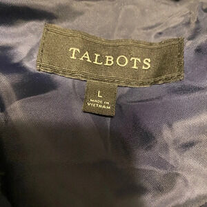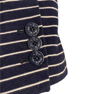 Talbots Navy Blue White Striped Jacket Button Front. It has two side pockets.