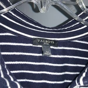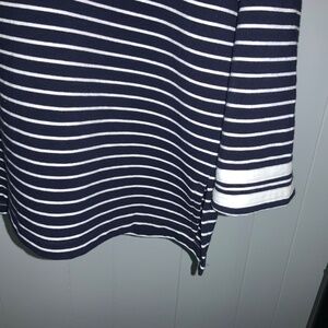 Talbots Navy White stripe tunic top Sz LP Cotton Stretch Knit Nautical cottage