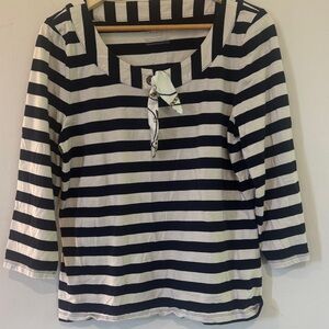 Talbots Navy and Cream Striped Top