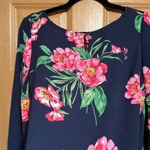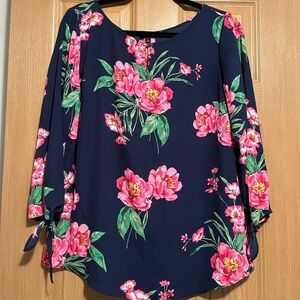 Talbots Navy and Pink Floral Blouse