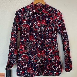Elegant paisley design. Button front closure. Ideal for everyday style.