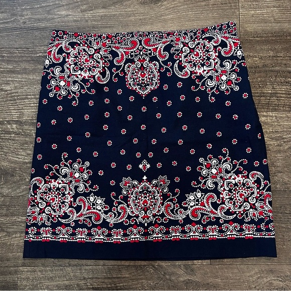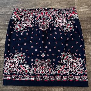 Talbots Navy and Red Paisley Mini Skirt Sz 10P