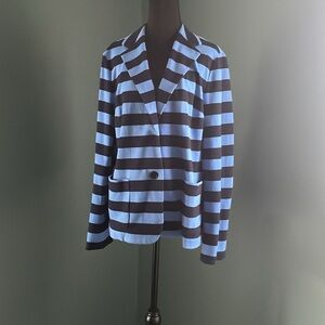 Chic Talbots jacket with navy and sky blue stripes. Ideal for everyday style.