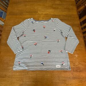 Talbots Navy and White Embroidered Floral Striped Top 1X