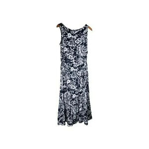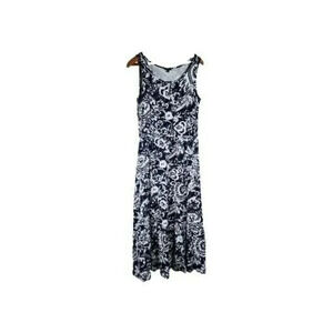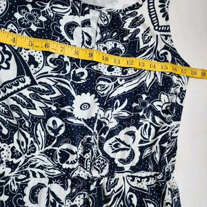 Talbots Navy and White Floral Print Keyhole Neck Sleeveless Maxi Dress Size M