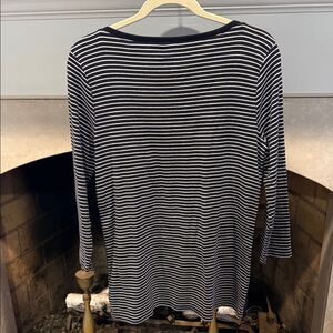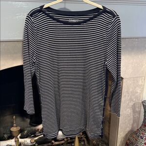 Talbots Navy and White Striped 3/4 Sleeve Weekend Tee Size Large
